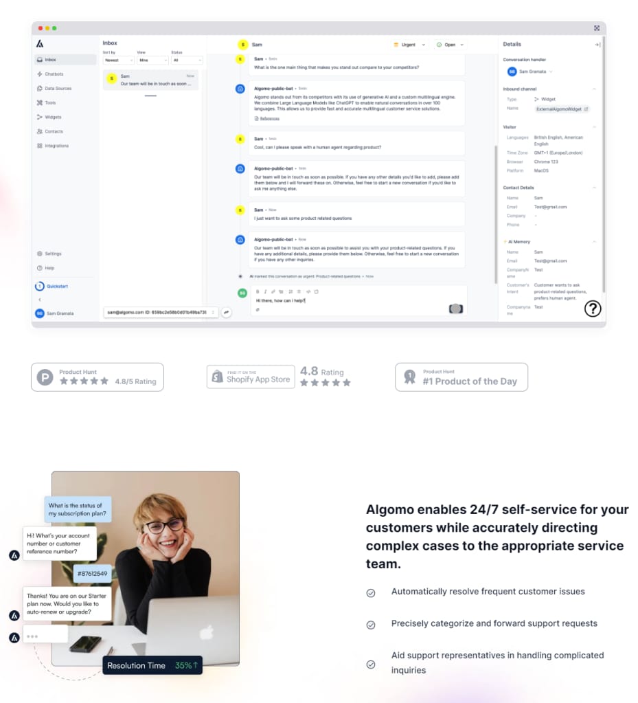 Ease of Use Despite its advanced features, Algomo is user-friendly and easy to set up. Its intuitive interface ensures a smooth experience for both customers and support teams.